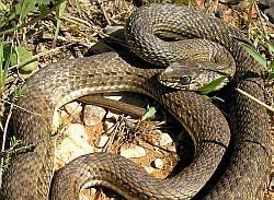 Another non-venomous species this snake only exists in Cyprus. Again, it changes colour from an olive-brown to a dark brown-black on maturing. It can grow to around 1.5m and you may see it in rocky but well vegetated areas near to streams. It feeds on a diet mainly consisting of lizards and may bite if threatened.